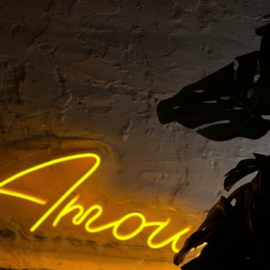 Neona zīme "Amour" – šiks un romantisks LED dizains, kas izstaro mīlestību un siltumu. Ideāli piemērota guļamistabām, viesistabām, kafejnīcām, butikiem vai kā stilīgs akcents modernā interjerā. Šī neona sienas māksla piešķir jebkurai telpai maigu, dzīvīgu mirdzumu, saglabājot energoefektivitāti un izturību. Eleganta, pievilcīga un burvīga – ideāla kombinācija mājīguma un mūsdienīga dekora.