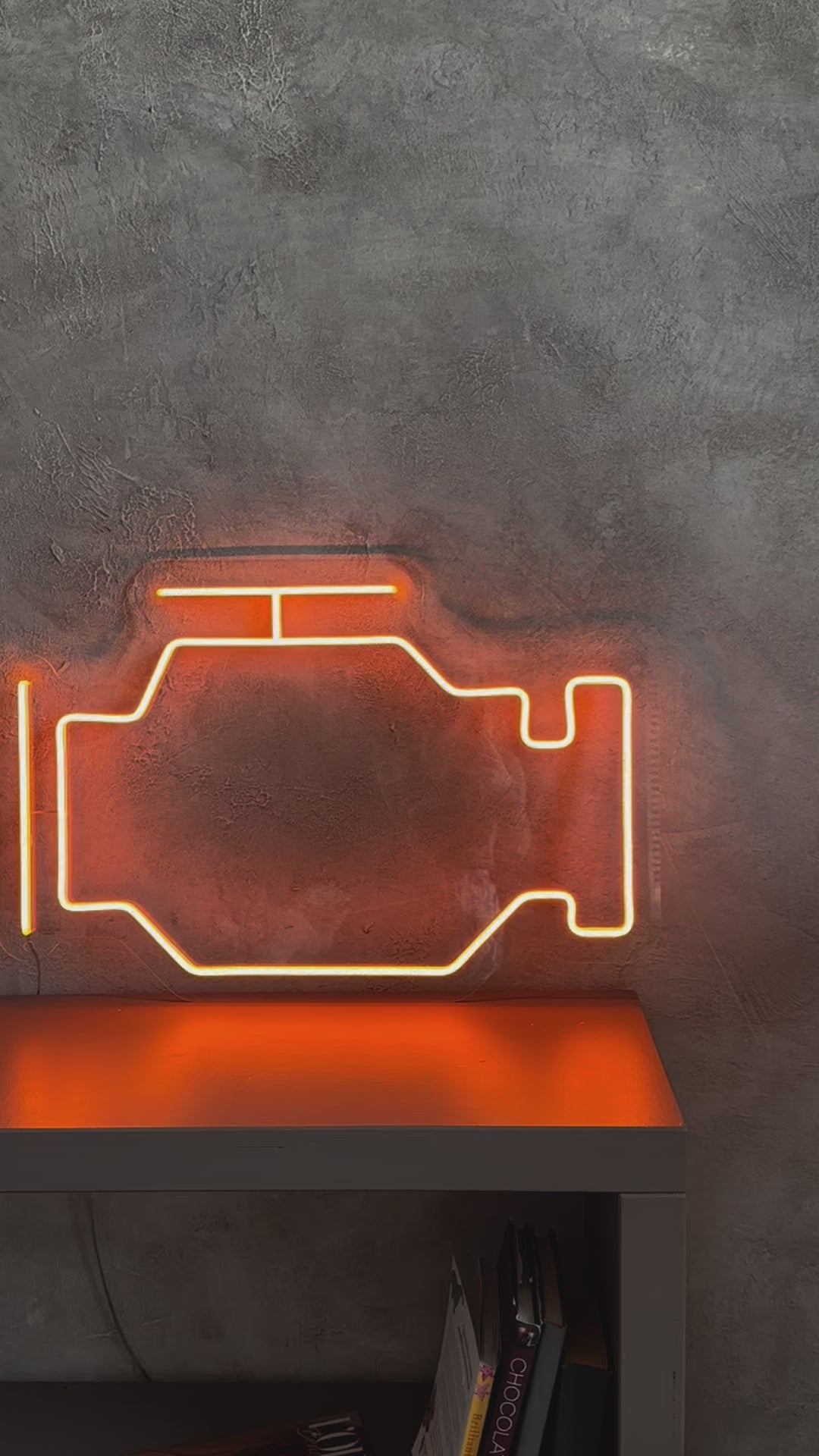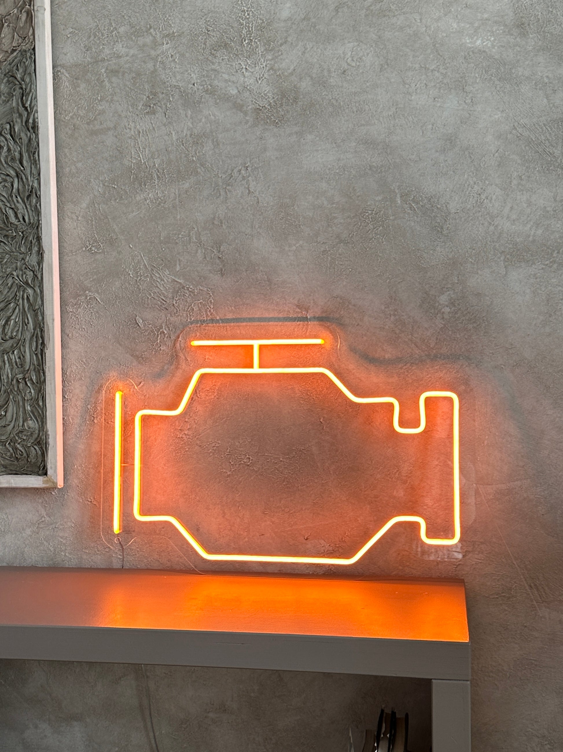 Personalizēta, ar rokām darināta LED neona zīme – moderna un unikāla dekorācija tavam auto vai garāžai ar Check Engine zīmi.