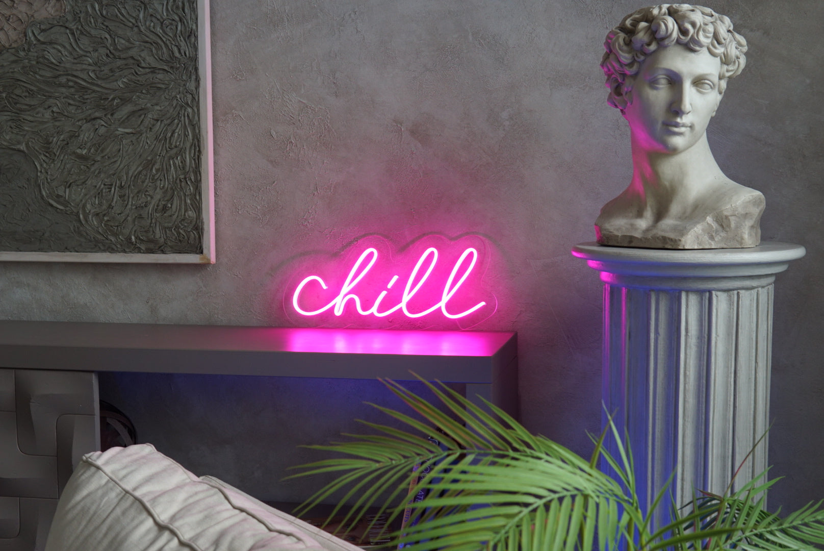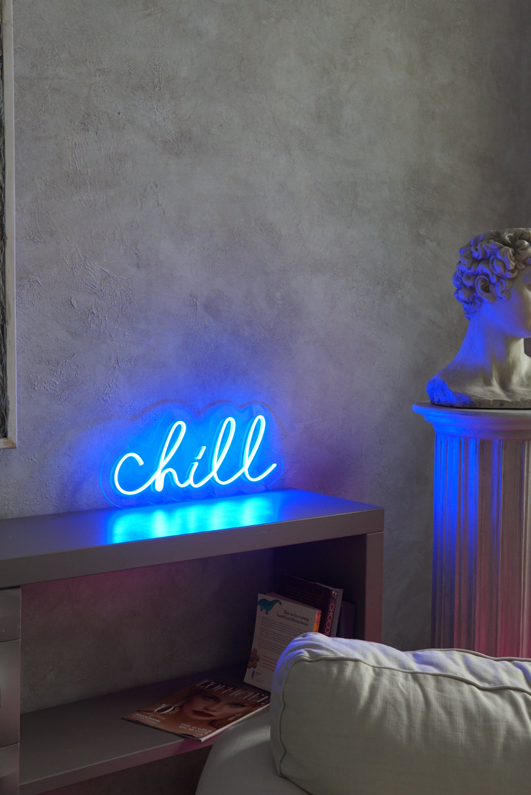Šī personalizētā ar rokām darinātā LED neona zīme „Chill” ir moderna un unikāla dekorācija mājām vai kā īpaša dāvana taviem draugiem. Ar savu vienkāršo, bet iedvesmojošo dizainu, šī zīme piešķir jebkurai telpai relaksējošu un mierīgu atmosfēru, veicinot atpūtu un mieru.
