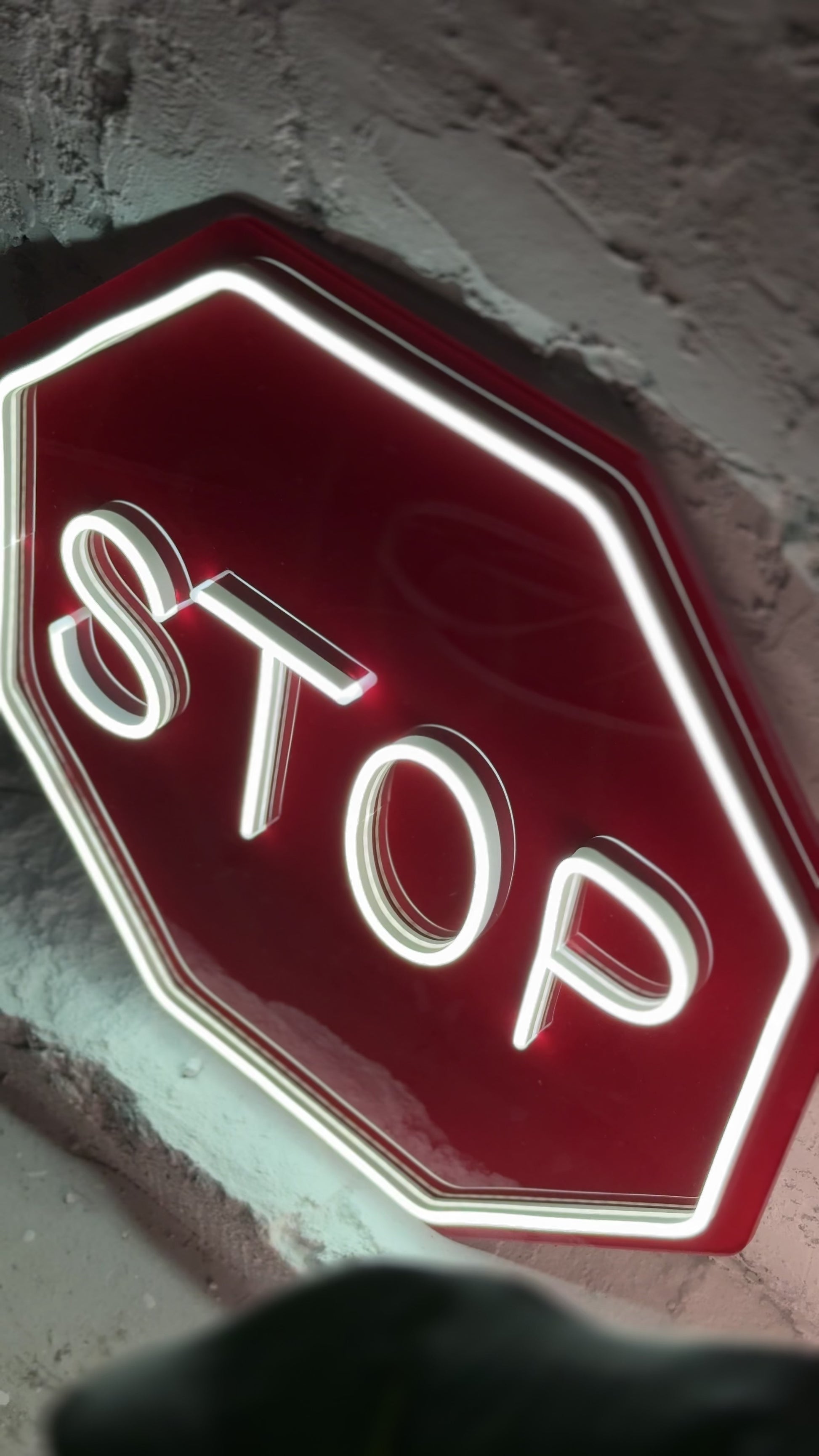 "Stop Sign" Neon Sign – a bold and iconic LED design inspired by the classic street sign. Perfect for bars, man caves, garages, game rooms, or as a playful statement piece in modern interiors. This neon wall art adds an urban, edgy vibe to any space while staying energy-efficient and durable. Eye-catching and instantly recognizable – the perfect mix of street style and contemporary decor.