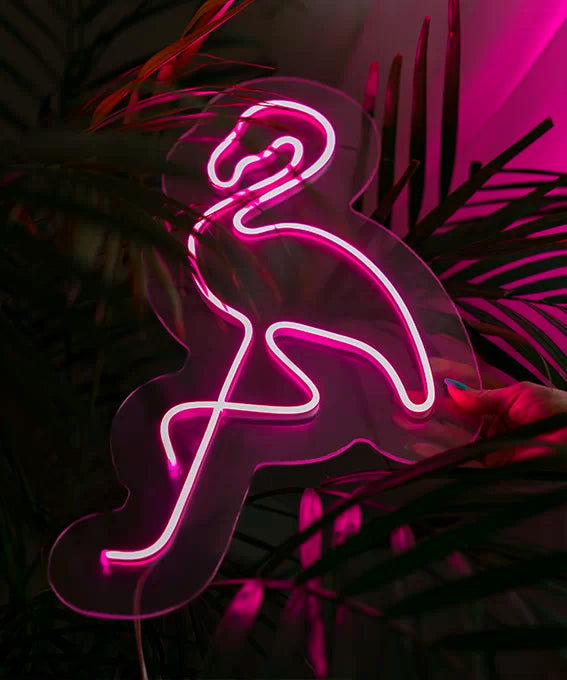 Неоновая вывеска "Flamingo" — яркий и экзотичный элемент декора, который привнесет в ваше пространство атмосферу летнего настроения и тропической элегантности.