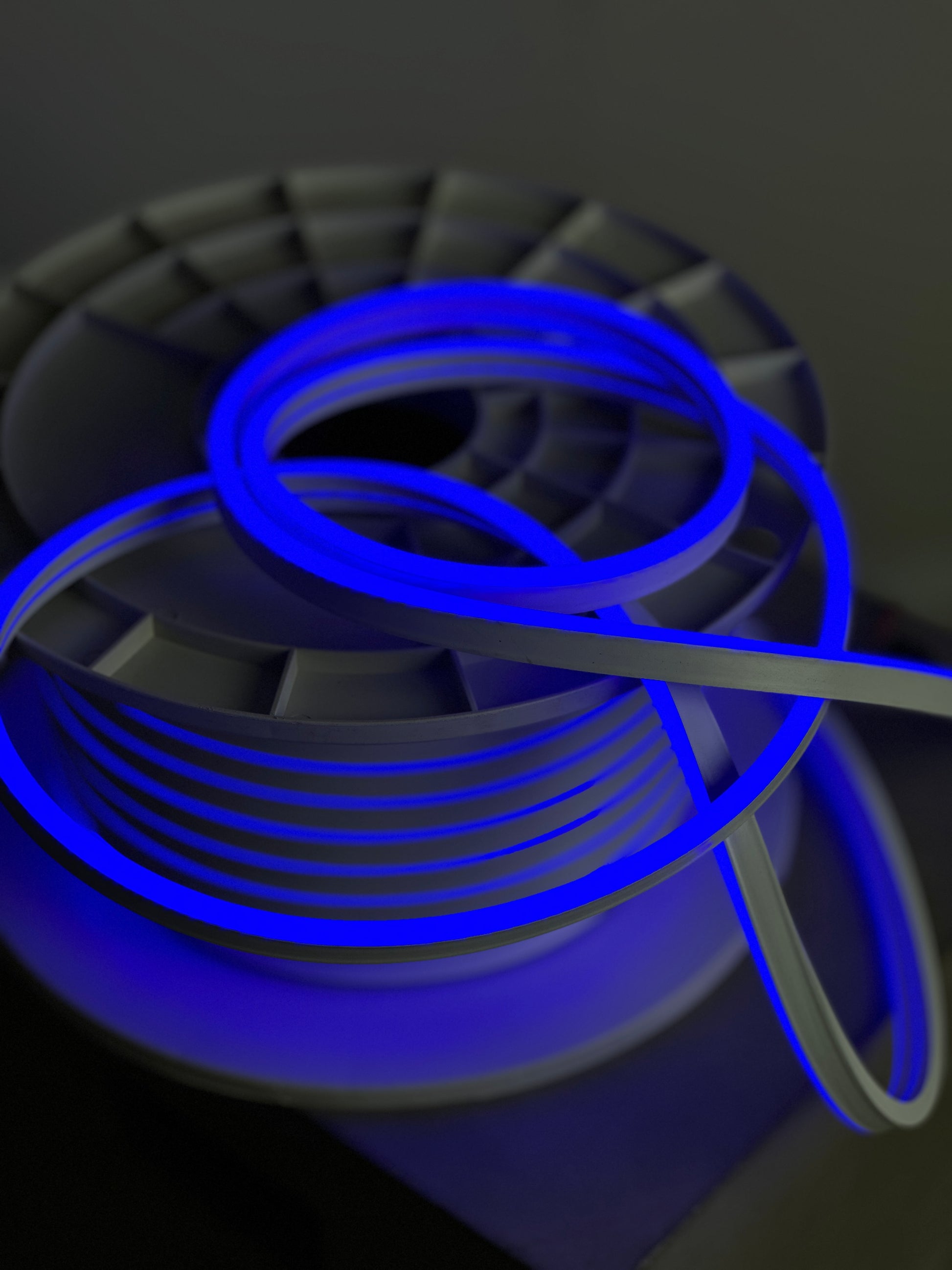 Добавьте выразительности и спокойствия вашему интерьеру с помощью светодиодной неоновой ленты синего цвета. Эта гибкая лента излучает насыщенное, глубокое синее свечение — идеально подходит для игровых комнат, креативных студий, вывесок или архитектурных акцентов. Синий свет создаёт прохладную и сосредоточенную атмосферу, которая подчёркивает как современные, так и атмосферные пространства.