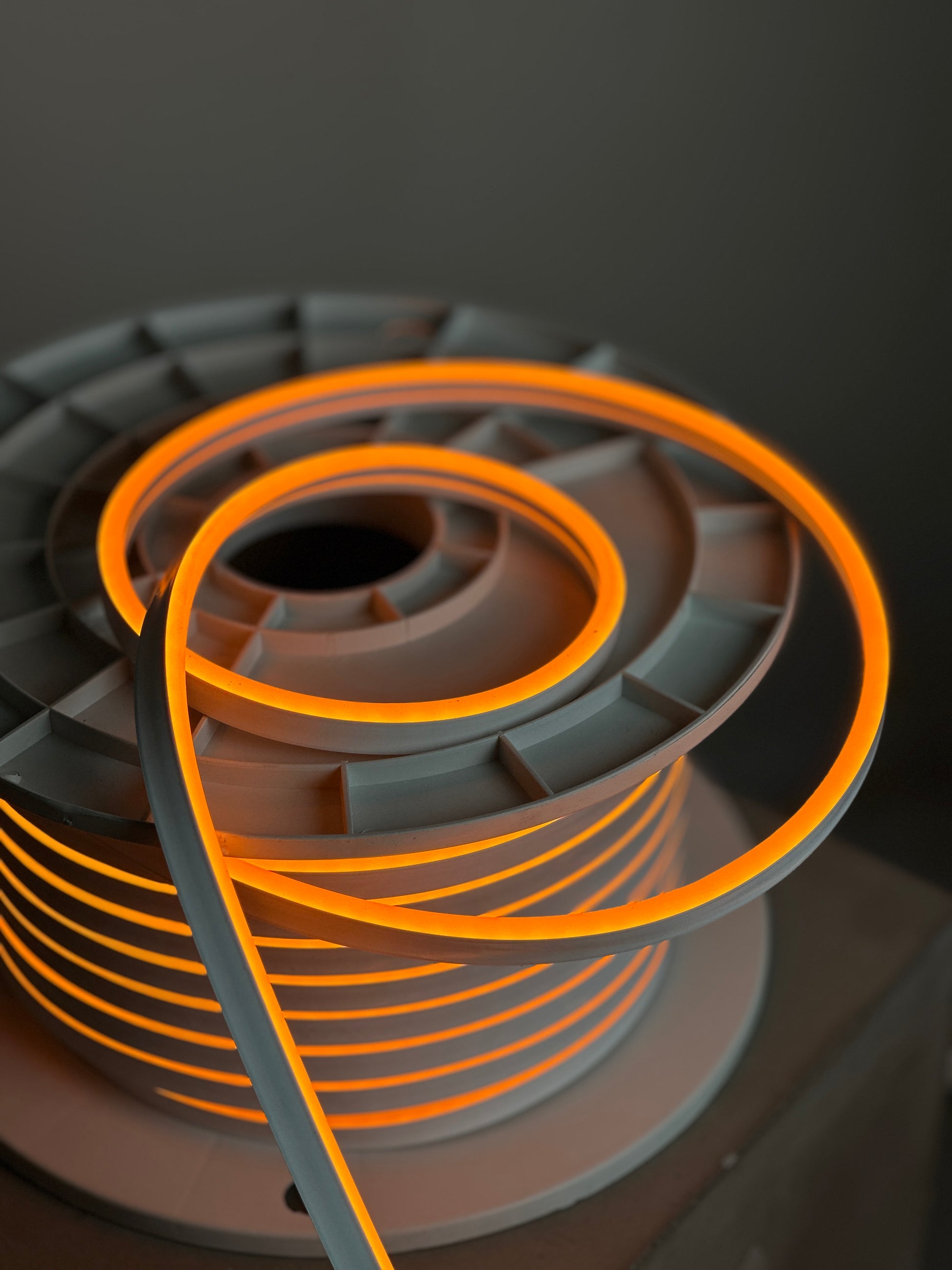 Добавьте нотку роскоши и яркости в ваше пространство с помощью светодиодной неоновой ленты золотисто-жёлтого цвета. Её насыщенный золотой оттенок придаёт теплоту и элегантность — идеально подходит для кафе, стильных интерьеров, праздничного декора или оригинальных вывесок. Хотите создать уютную атмосферу или эффектный акцент — этот яркий цвет заставит ваш дизайн сиять.