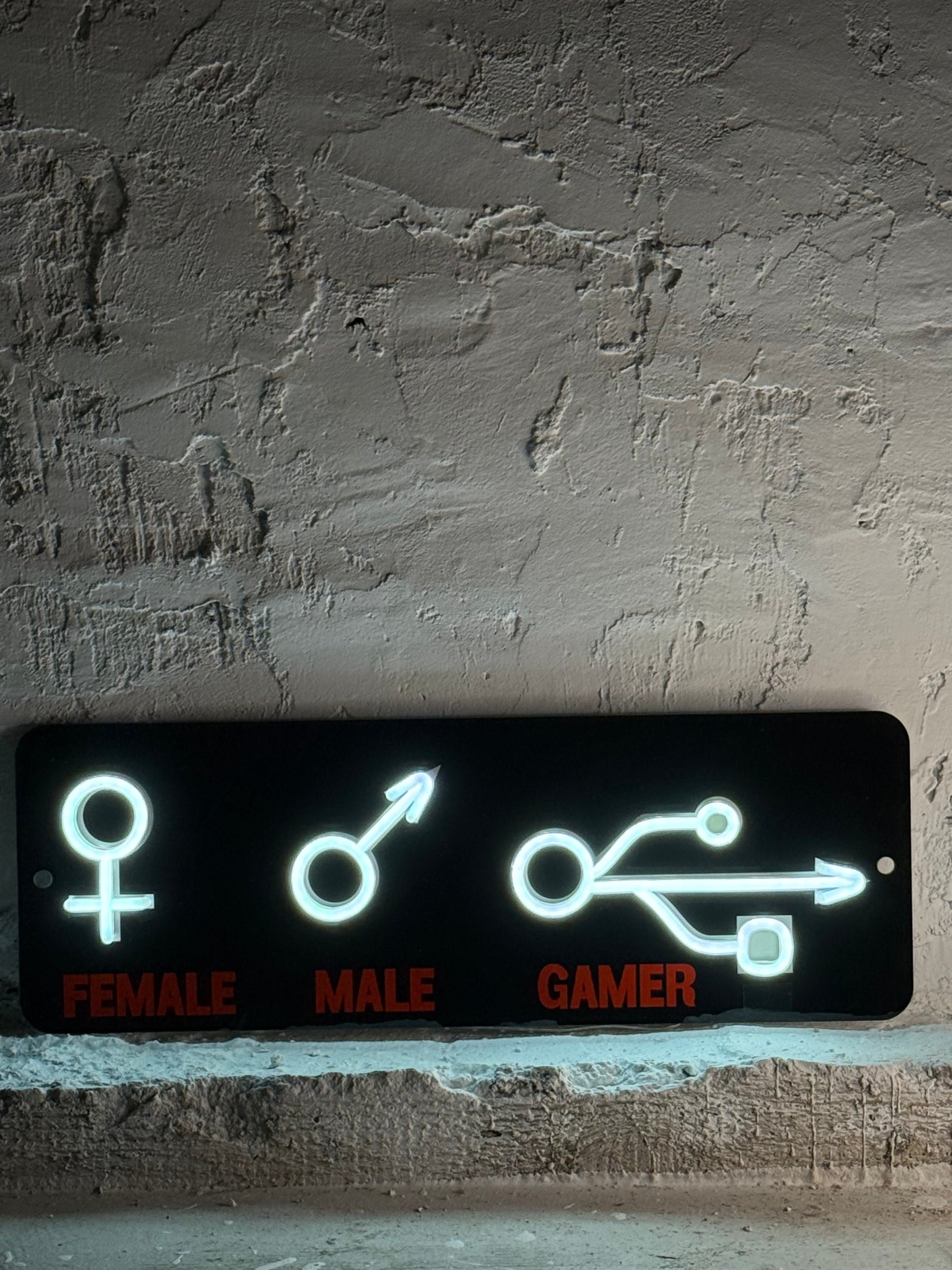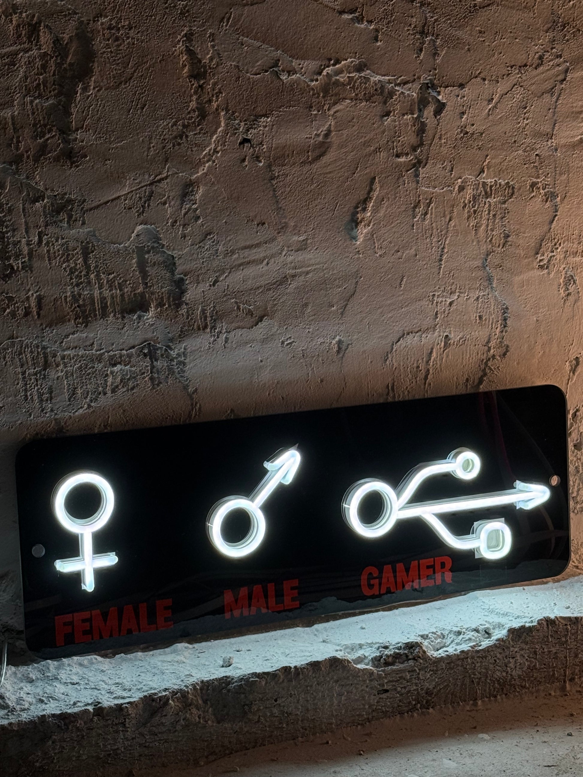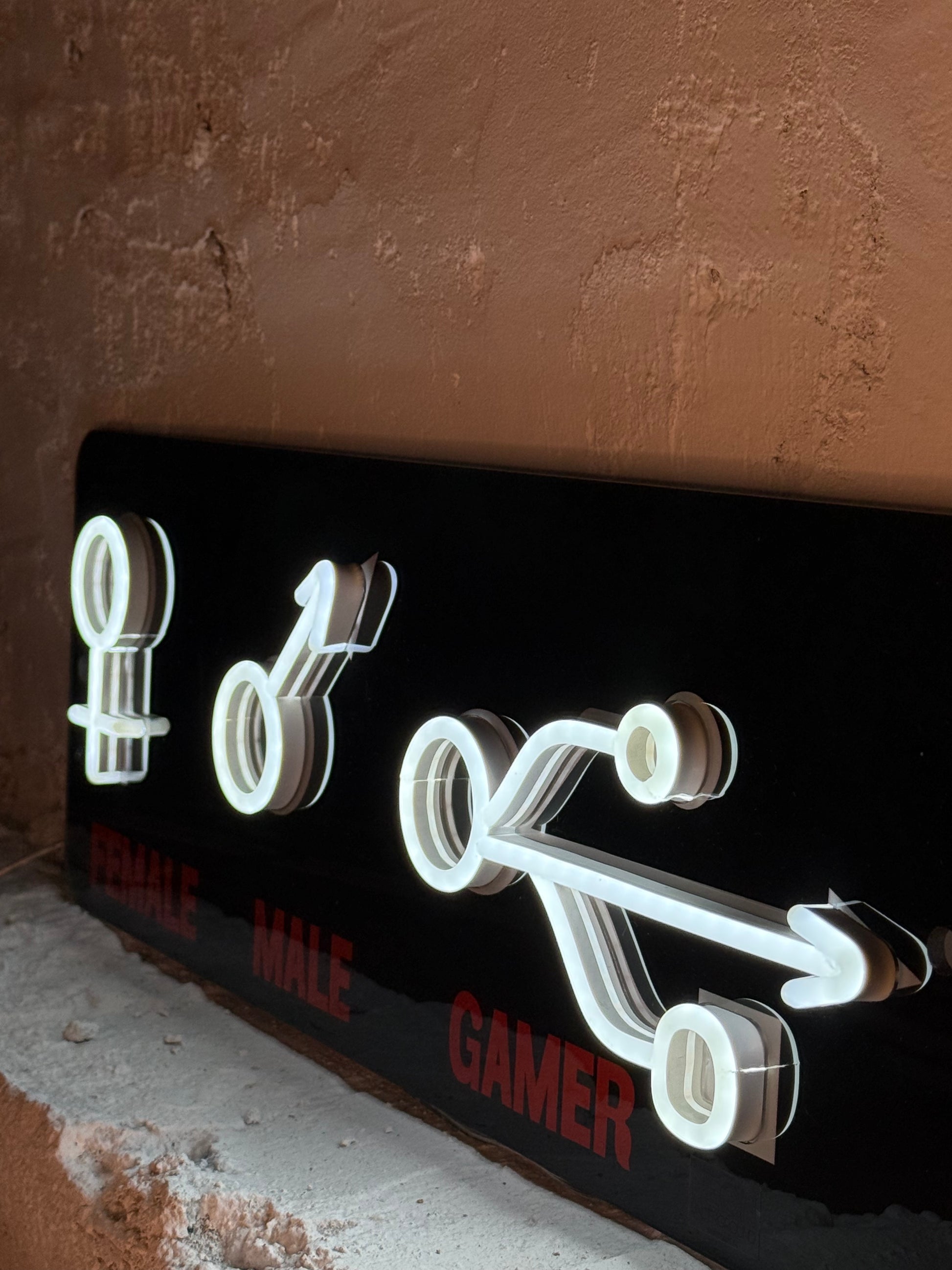 Неоновая вывеска "Male Female Gamer" – креативный LED-дизайн, объединяющий три культовых символа: мужской, женский и геймерский. Идеально подходит для игровых комнат, стриминговых сетапов, eSports лаунжей или как уникальный элемент декора, подчеркивающий инклюзивность в мире игр. Эта неоновая настенная арт-работа делает смелое заявление о страсти, разнообразии и сообществе в современной игровой культуре. Надёжная, энергоэффективная и невероятно эффектная – идеальная вывеска для геймеров и контент-креаторов.