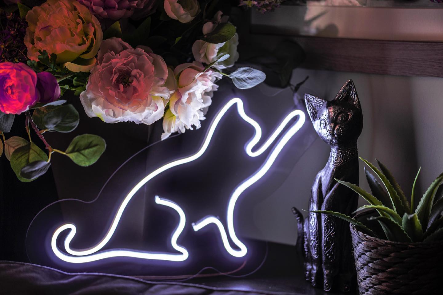 Неоновая вывеска "Кот с поднятой лапкой" – игривый LED-дизайн, передающий любопытный и очаровательный характер котов. С элегантным силуэтом и поднятой лапкой эта неоновая настенная арт-работа мгновенно добавляет тепло и индивидуальность любому интерьеру. Идеально подходит для спален, гостиных, кафе, зоомагазинов или как уникальный подарок для любителей кошек. Энергоэффективная, долговечная и стильная – сияющее напоминание о радости, которую приносят коты в нашу жизнь.