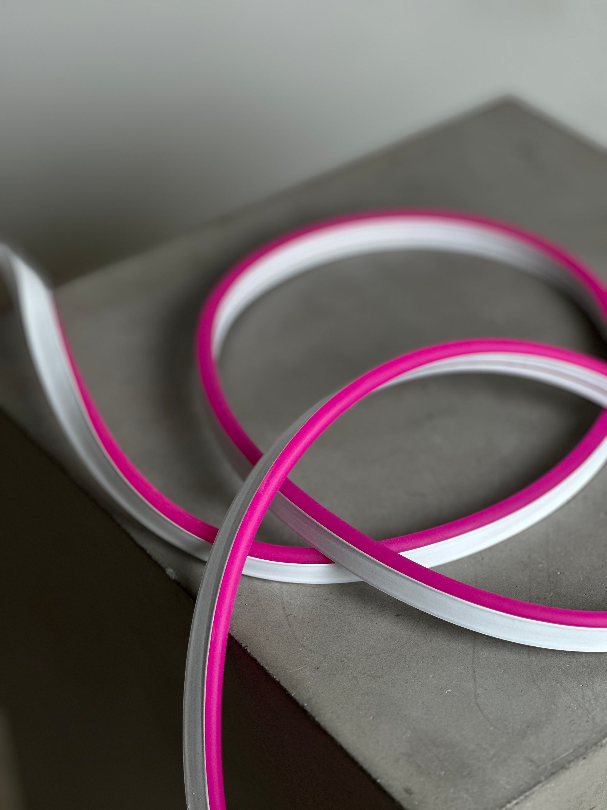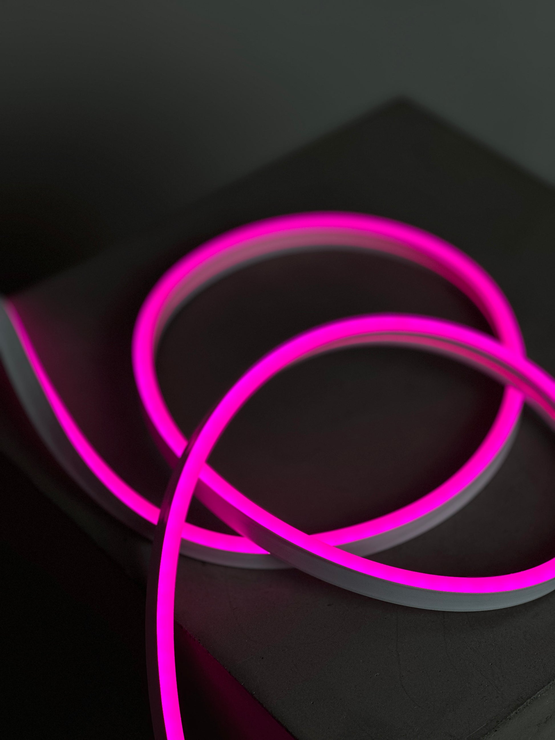 Добавьте игривое, романтичное или модное свечение в ваше пространство с помощью светодиодной неоновой ленты розового цвета. Эта гибкая лента излучает мягкий и привлекательный розовый свет, придавая очарование и индивидуальность спальням, мероприятиям, торговым помещениям или креативным инсталляциям. Хотите создать мечтательную атмосферу или яркий акцент — розовый всегда выглядит стильно.