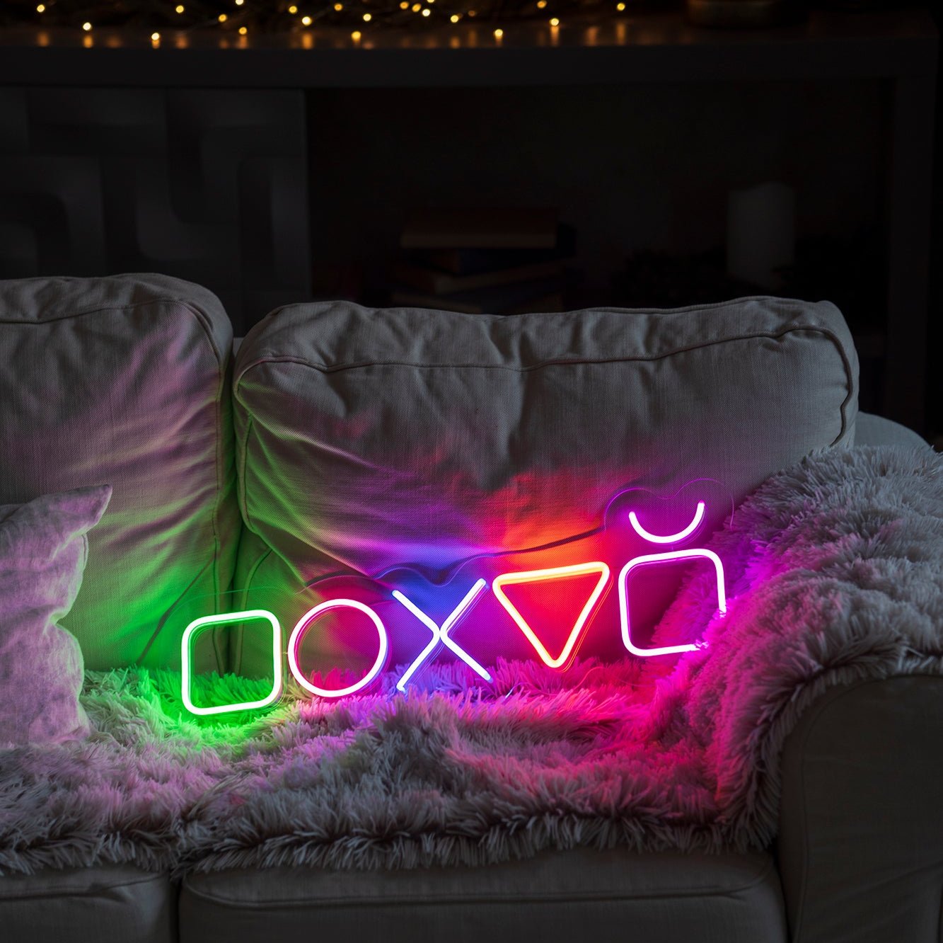 Эта уникальная неоновая вывеска, выполненная в виде знаковых иконок PlayStation, содержит скрытое послание с юмором, которое точно вызовет улыбку у всех, кто её увидит.
