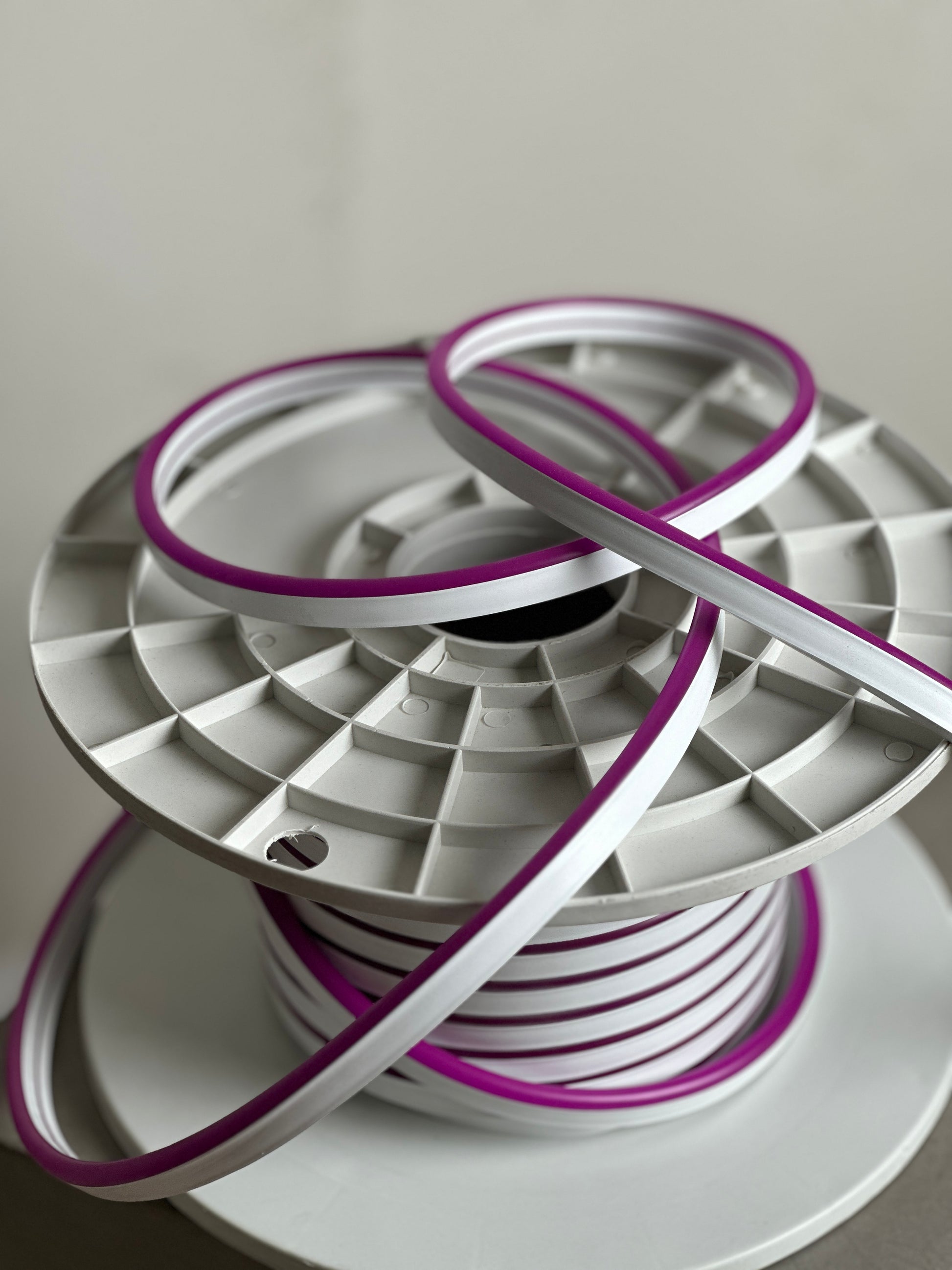 Добавьте игривое, романтичное или стильное сияние в ваше пространство с помощью светодиодной неоновой ленты фиолетового цвета. Эта гибкая лента излучает мягкий и привлекающий внимание фиолетовый свет, придавая очарование и индивидуальность спальням, мероприятиям, витринам или креативным инсталляциям. Хотите создать мечтательную атмосферу или выразительный акцент — фиолетовый всегда смотрится эффектно.