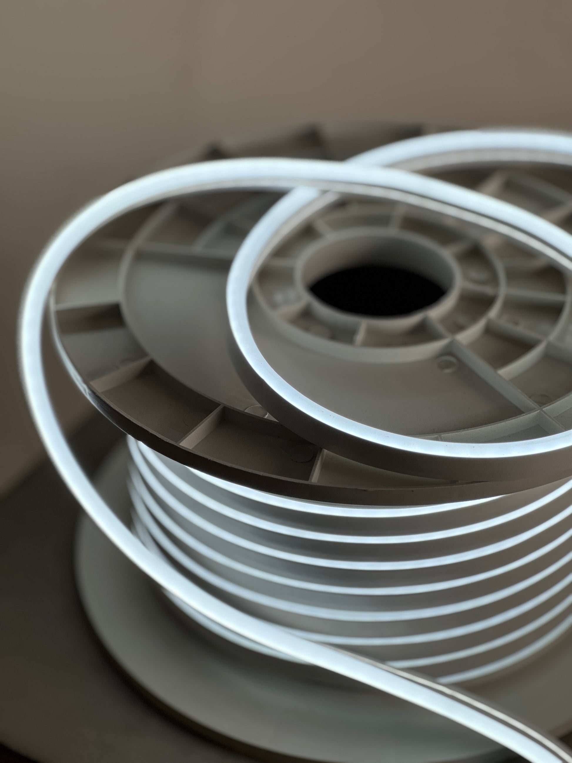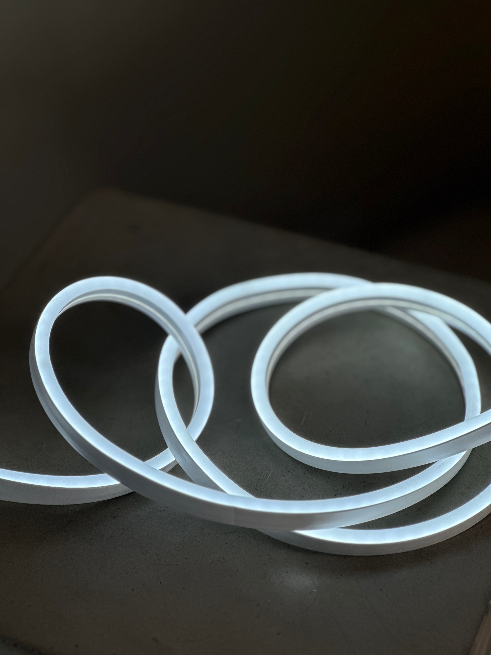 Осветите ваше пространство с помощью чистого и яркого свечения светодиодной неоновой ленты белого цвета. Её холодный оттенок придаёт современный и профессиональный вид, что делает её идеальной для архитектурной подсветки, вывесок, витрин, студий или минималистичных интерьеров.
